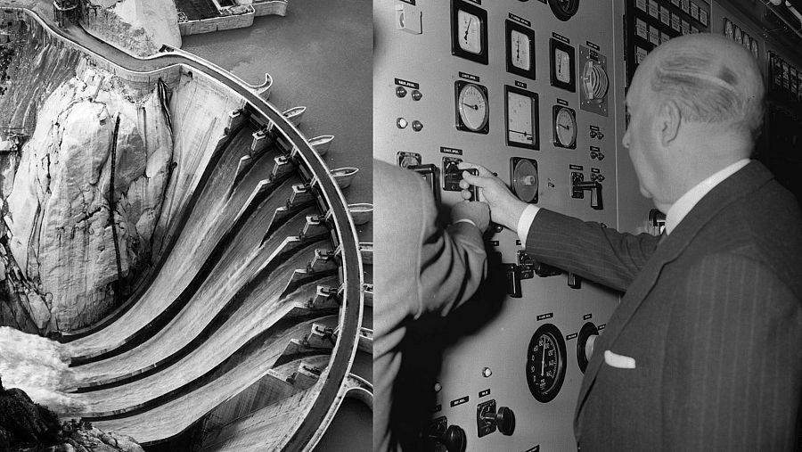 1944 es un año clave por el nacimiento de Iberduero, fruto de la fusión de grandes hidroeléctricas, y por la aparición de la pública Endesa. Pese a todo, y contra la tendencia dominante en la Europa de posguerra de nacionalizar el sector eléctrico, el capital privado sigue mandando en España. También cuando entra en juego el actor nuclear, recibido con gran simpatía por el régimen. La central de Zorita se conectará a la red en 1968 como primer paso de una estrategia que preveía construir una veintena de reactores.