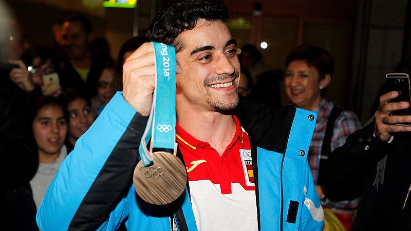 El patinador madrileño Javier Fernández, flamante ganador de la medalla de bronce en los Juegos de Invierno de Pyeongchang 2018, recibió una calurosa bienvenida a su llegada a España. "Estoy de vuelta en casa y súper contento de traer una medalla y compartirlo con la gente. Mi estado es de felicidad plena. Estoy con nervios solo de ver a toda esta gente en el aeropuerto. No me lo esperaba en absoluto", dijo el patinador tras llegar al aeropuerto de Madrid-Barajas, donde le recibieron unas doscientas personas.