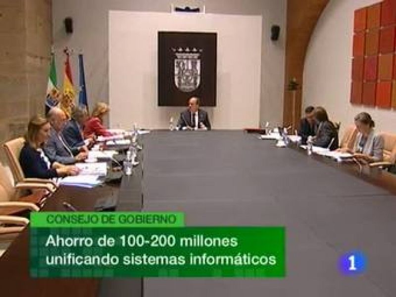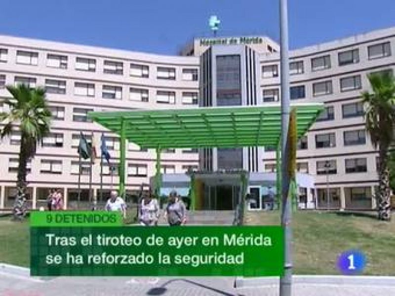 Hoy hemos despertado con la región en alerta por altas temperaturas. Hoy las Vegas altas y bajas del Guadiana serán las que más sufran los rigores del calor, con hasta 40 grados de temperatura...Los sindicatos del nuevo grupo financiero que forman Caja Extremadura, Cajastur y Caja Cantabria, es decir, Liberbank, esperan el resultado de la reunión de la comisión de seguimiento. De él dependerá que convoquen o no concentraciones para protestar por el desplazamiento de 50 empleados a Asturias. Por ahora ninguno es extremeño...La actual directora del Festival de Teatro de Mérida valora de nuevo la gestión económica del Festival de Mérida tras el reciente informe del Tribunal de Cuentas sobre el certamen en años anteriores. Blanca Portillo insiste en que lo suyo es la dirección artística pero ha llegado a reconocer esta mañana que la deuda del Festival es mayor de lo que le dijeron en un principio...En la edición número 27 del Festival de Teatro de Alcántara, Rafael Álvarez "El Brujo" vuelve a arrasar en taquilla. (10/08/11)