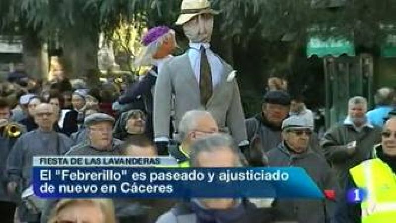 Es uno de los pocos vestigios del carnaval que aún quedan en Cáceres.La Fiesta de las Lavanderas.La Universidad Popular impulsa una vez más este festejo que simbolizaba el final del invierno para ellas, que son encarnadas por los estudiantes del citado centro universitario...Malestar en las cooperativas agrarias extremeñas por la decisión de la UE de introducir frutas y verduras marroquíes en el mercado comunitario. Temen sus precios más baratos y su menor calidad.... Y las movilizaciones que los sindicatos extremeños han convocado en Cáceres el próximo domingo contra la reforma laboral siguen generando reacciones. La Vicepresidenta de la Junta, Cristina Teniente, dice respetar la movilización pero no la comparte puesto que pide tiempo para ver los efectos de la reforma. Por su parte, sindicatos e IU han mantenido esta mañana un encuentro donde han resuelto calificar la citada reforma laboral como una "vuelta a los años 70"...Representantes de las cooperativas de Tierra de Barros han advertido esta mañana en Mérida que si se lleva a cabo la Refinería de Tierra de Barros, puede peligrar hasta la Denominación de origen Ribera del Guadiana. Añaden que se verán afectadas 20 mil familias por la pérdida de empleo y más de millón y medio de jornales anuales. (17/02/12)