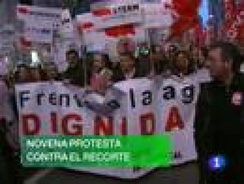 Varias decenas de miles de personas se manifestaban este martes por novena vez en las calles de Murcia, para protestar contra los recortes de la Administración regional a los funcionarios, en una marcha en la que participaban los líderes nacionales de UGT y CCOO, Candido Méndez e Ignacio Fernández Toxo.