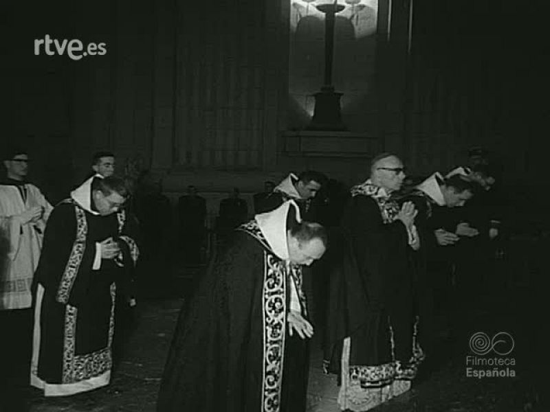 ACTUALIDAD NACIONAL. EL GENERALISIMO FRANCO ASISTE AL SOLEMNE TE DEUM EN EL VALLE DE LOS CAIDOS. ACCION DE GRACIAS POR LOS "VEINTICINCO AÑOS DE PAZ". LOS PRINCIPES DE ESPAÑA, LOS MINISTROS Y EL NUNCIO DEL PAPA PABLO VI MONSEÑOR ANTONIO RIBERI ESTAN PRESENTES EN LA CEREMONIA. LA ESCOLANIA INTERPRETA LOS HIMNOS DURANTE LA MISA. A DOS MIL METROS DE ALTURA EN EL PUERTO DE ENVALIRA. PRUEBAS DE NUEVAS MAQUINAS QUITANIEVES. NOTICIAS MUNDIALES. EL MINISTRO SR. FRAGA IRIBARNE, EN LA EMBAJADA DE ESPAÑA EN EL CAIRO. ENTREGA CONDECORACIONES. ENTREVISTA CON EL PRESIDENTE DE LA R.A.U. (REPUBLICA ARABE UNIDA) GAMAL ABDEL NASSER.00:03:58 : ENTREGA DE LOS PREMIOS CINEMATOGRAFICOS "DAVID DI DONATELLO". ASISTEN ACTORES: MEL FERRER, RAF VALLONE, VITTORIO DE SICA, AUDREY HEPBURN Y GINA LOLLOBRIGIDA, EL PRESIDENTE DE LA REPUBLICA ITALIANA ANTONIO SEGNI, FELICITA A LOS GALARDONADOS. SE ENCUENTRAN LOS DIRECTORES ANGELO RIZZOLI, CARLO PONTI, GOFFREDO LOMBARDO Y ROBERTO HAGGIAG. TRILLIZOS EN EL EJERCITO ALEMAN. LOS HERMANOS KRONCKE, MASCOTA DE SU REGIMIENTO. SEMANA SANTA. CURIOSOS PERSONAJES EN LA SEMANA SANTA DE ORIHUELA. PASOS DEL CABALLERO CUBIERTO Y LA DIABLESA. VIA CRUCIS EN ROMA. SU SANTIDAD EL PAPA PABLO VI RECORRE LAS ESTACIONES.